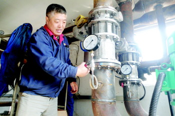 工作人员在调试换热站管道阀门。 宋祖锋 摄
