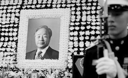 汉城医院里,金泳三的遗像被鲜花簇拥着。