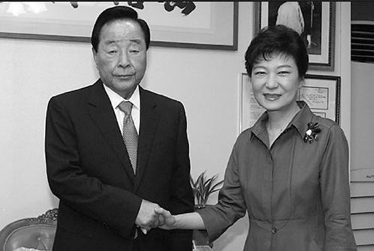 2012年8月,朴槿惠前往金泳三家中拜访。(资料片)