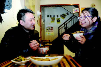 借用《舌尖上的中国》里的一句话:“他们的一天是从一碗牛肉面开始的”。两人因牛肉面结缘,也正好发挥自己的一技之长,用牛肉面来发家致富。四年前,两人的女儿诞生,给这个家庭带来不少欢乐;三年前,“牛肉面达人”店开业。“年轻人总归是要自己去拼一拼的,哪怕白手起家,哪怕家人反对,只要自己去坚持,去努力,平凡的梦想也会长成参天大树。”杨斌说。