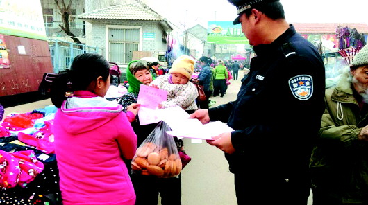 临近年关,为打击拐卖妇女儿童的违法犯罪行为,章丘警方组织警力上街宣传“防拐”常识。22日上午,章丘市公安局民生警务平台民警在垛庄镇集市上,向过往群众宣讲犯罪分子拐卖妇女儿童的作案特点,宣传预防拐卖的知识,提醒群众提高防范意识。