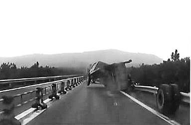 高速路上货车断轴散架司机下车狂追轮胎