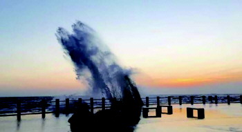 今晨6点,灯塔广场附近掀起巨浪。