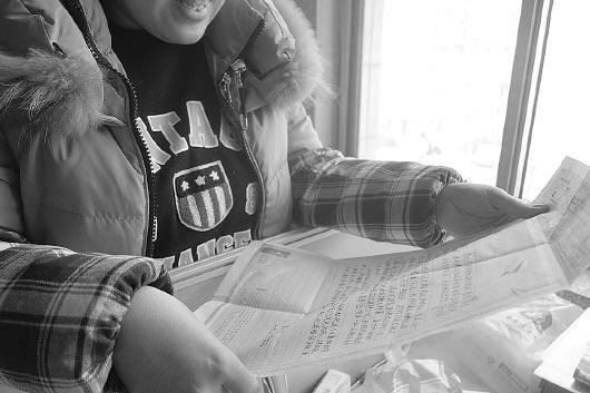 在信里,小民畅想了2015年的生活,说在烟台举办完婚礼了,自己说不定就做准爸爸了。小赵看到这里,笑着说,他还挺有先见之明的。小赵现在已经怀孕三个月了,今年就要做妈妈了。
