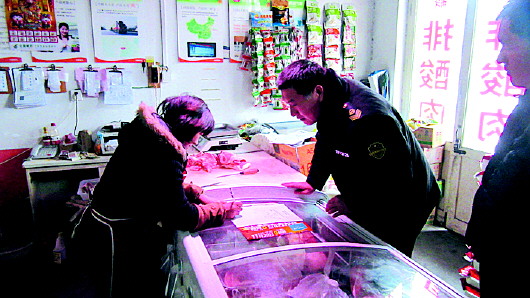 近日,官庄食品药品监管所对辖区内社区开展元旦前夕食品药品安全“大扫除”专项行动。执法人员重点对官庄大集、闫家峪大集几家生猪肉店销售的猪肉进行了检查。