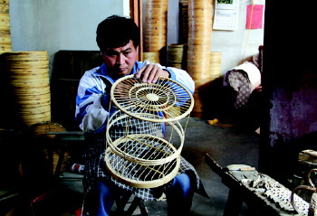 大欧村的村民正在制作鸟笼。(图片由即墨移风店镇政府提供)