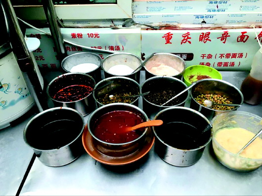 ▲重庆小面的配料有十多种,配比要靠大厨掌握。