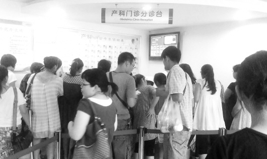 “二孩政策”在我省落地后,产科门诊排满了准妈妈。(资料片)本报记者 李钢 摄