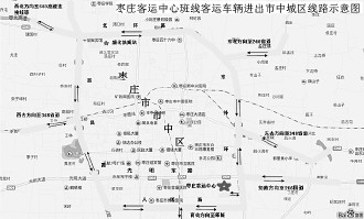 枣庄汽车总站客车进出市中城区线路示意图。