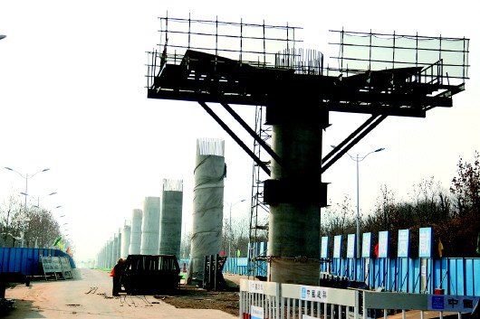 轻轨R1线墩柱浇筑即将结束