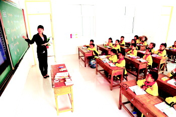 泗水县中册镇石桥小学学生在新教室内上课。本报记者 黄广华 摄