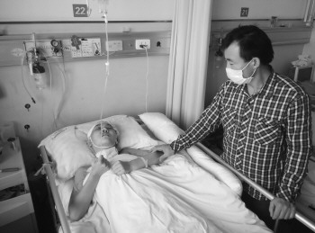 杨文昌守护在女儿杨靖的床边。 本报记者 孙国祥 摄