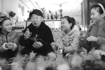 近日,青州市云门山街道青龙回民小学校外辅导员、国家级非物质文化遗产青州花毽项目传承人李贤臣正在向小学生手把手传授花毽的制作过程。近年来,该小学通过聘请校外辅导员、定期举办花毽比赛等多种形式,积极弘扬当地“非遗“文化——青州花毽。