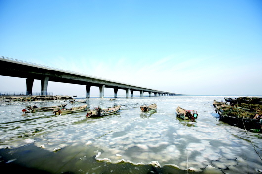 20日是二十四节气中的大寒,在胶州湾大桥黄岛端红石崖码头附近,近百艘渔船被海冰冻住。对当地渔民来说,不仅无法出海作业,自家养殖池里的海产品也受到很大影响。据省气象台预报,“世纪寒潮”即将抵达山东,最低气温将出现在24日早上,德州、滨州、济南等地气温可能低至-20℃,逼近历史极值。 本报记者 张晓鹏 摄