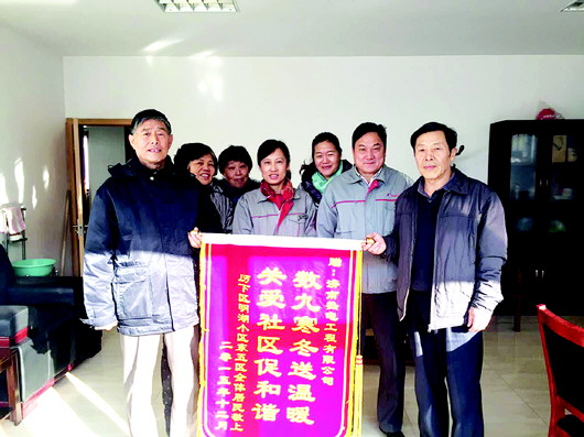 本报讯(记者 王倩) 1月13日清晨,明湖小区东五区几名用户代表冒着严寒来到济南热电有限公司工程公司,送上了“数九寒冬送温暖,关爱社区促和谐”的致谢锦旗,感谢工程公司解决了小区居民期盼的集中供暖问题。
