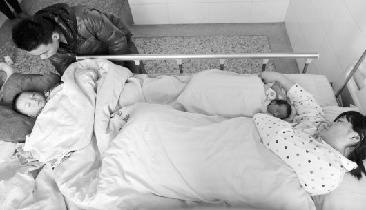 1月27日,王兆敏生下二宝。因为怕大儿子见不着妈妈情绪波动触发病情,康训涛把大儿子也带到了病房里。