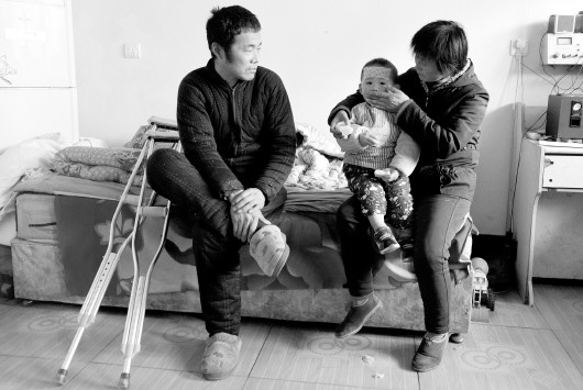 小浩然的爷爷去年伤了脚,因为怕耽误孙子治病,一直拖着没做手术,如今脚肿得厉害,只能拄拐活动。