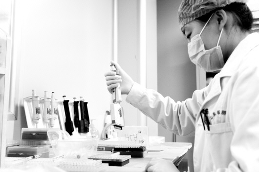 1月28日,山东省脐血库的工作人员加紧为小浩然做脐带血配型检测。