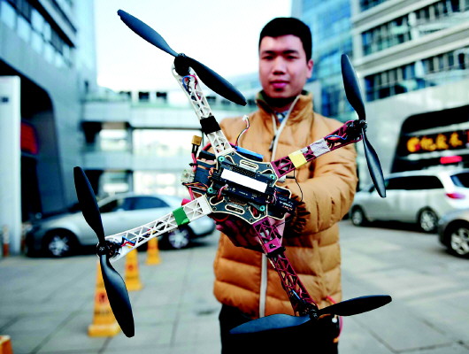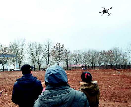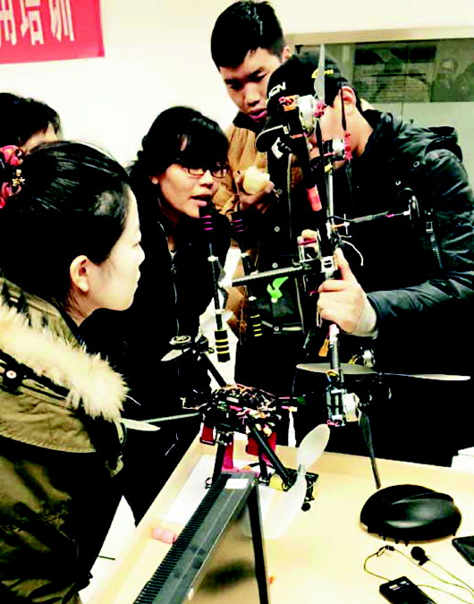 ▲安装与调试无人机。