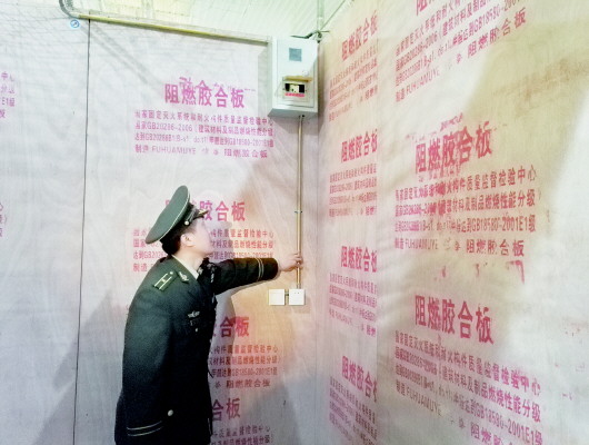 此次整改,一方面商铺之间增加了阻燃板并进行防火分隔,中间还加增了岩棉;另一方面,商铺内的电线也全都进行穿铜管布设。