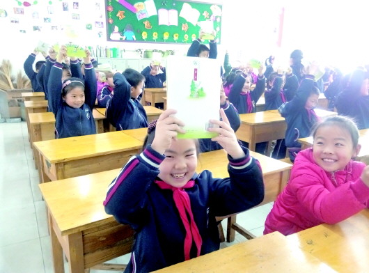 ▲拿到新课本真高兴。