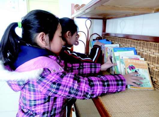 ▲开学了,跟小伙伴一起整理书籍。