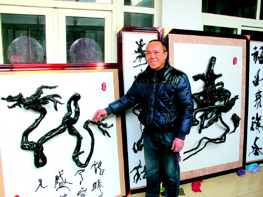 章丘农民自创根艺书法