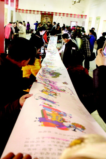 木版年画长卷吸引了众多观众。