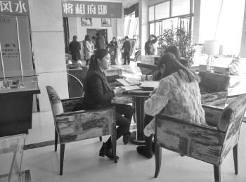 菏泽市区一售楼处,看房和买房的人不少。本报记者 姚楠 摄