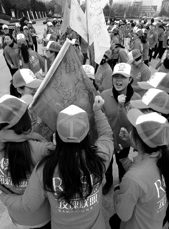 本报3月8日讯(记者 刘媛) 展巾帼风采,爱文明城市。3月8日上午,日照玫瑰联盟的120余位姐妹相聚日照市人民政府广场,不惧春寒料峭,通过开展一场趣味体育运动会庆祝“三八”妇女节。