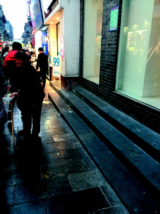 从泉城广场经过街天桥往世贸国际广场走,陆续出现了一些乞丐。及至芙蓉街附近,乞讨者数量明显增多。在芙蓉街的主街,几乎每个胡同口都能看到一两个乞讨者。中午11点至下午4点,游客数量达到顶峰,乞丐们也在此时集中出现。