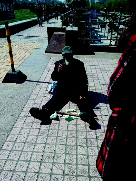 在泉城广场乞讨的老人