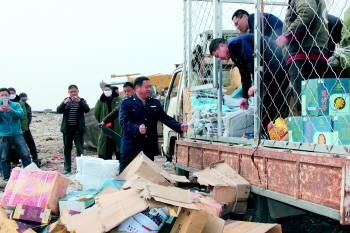 15日,牡丹区市场监督管理局在菏泽市生活垃圾综合处理厂,将近年来查处的假冒名牌服装、侵权太阳能、假冒名牌葡萄酒、白酒、罐头等食品、假冒化肥等农资总货值100余万元的伪劣商品,通过挖掘机等工具对要销毁的物品进行粉碎破坏、深坑掩埋等集中无害化处理。