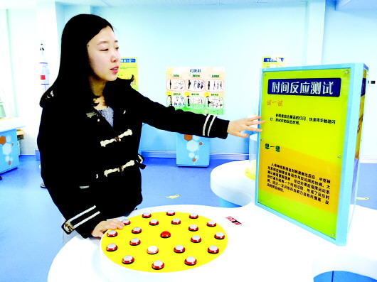 还有一些项目能够锻炼居民的反应能力。一种类似于“打地鼠”游戏的项目可以精确地测出居民的反应速度。“谁来体验,都喜欢玩这个项目。”社区工作人员预测,这将是最“火”的项目之一。画五角星的游戏要求居民看着镜像中相反的五角星描画原本的五角星,一旦出错,灵敏的面板就会感应到,自动记下出错的次数。