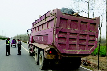 渣土车超载运输,一旦发生紧急情况,刹车距离长,安全隐患大,拐弯时容易侧翻,给在道路上行驶的其他车辆构成严重威胁。为此,交警部门近日开展了针对渣土车交通违法的重拳查处。