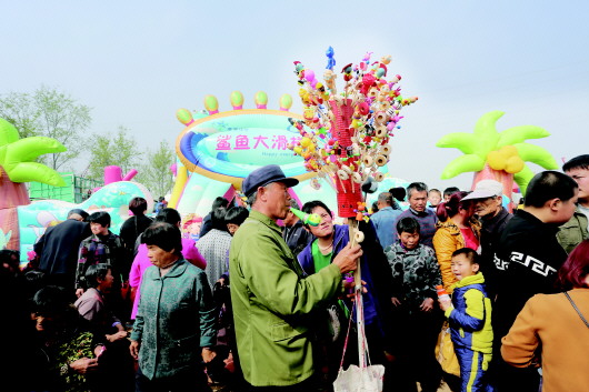 每到三月三,郑路镇梁王村周围就开启了“人挤人”模式,四面八方的游客来到这里赶庙会。今年三月三正值周六,来赶庙会的人比去年多了不少。鼓子秧歌队伍、民间艺人也都前来凑热闹,庙会形式也由原先的单一祈福变为祈福与民俗多种形式共存。