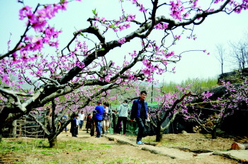 13日,渐次开放的桃花让博山区池上镇的桃园里游人如织,游客穿梭花海拍照留念,记录四月的美丽。其实很少有人知道,这些桃园都是齐长城脚下的贫困村庄所有。本周,为了开发齐长城旅游,同时促进沿线精准扶贫,淄博市委宣传部牵头向市民推荐了一条桃花观赏旅游路线,以及多个沿线特色乡村旅游景点,以增加当地农民收入,促进当地旅游发展。 本报记者 王鸿哲 摄影报道