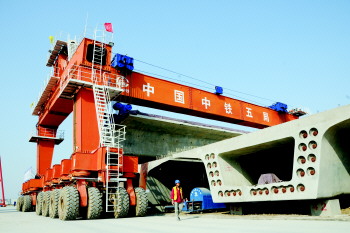 吊梁机将制作好的梁移到存放区。 本报见习记者 李洋 摄