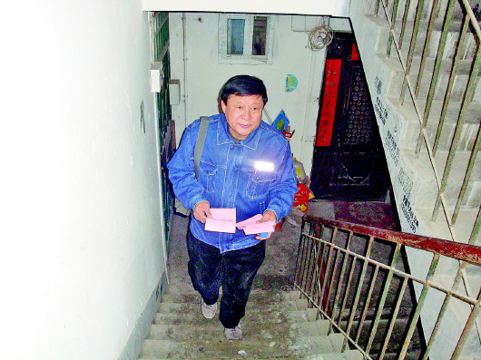 4月20日,快到月末了,马上就要60岁的杜连根一大早收拾好笔记本、笔、催费单,戴上安全帽,骑上电动车,径直朝他所管辖的小区去进行催费工作。每到抄表催费日,杜连根每天要走两万多步,每天要张贴200余户催费单。