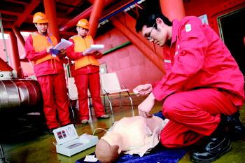 连日来,海洋采油厂海一区组织开展为期一周的HSE技能训练营活动,对一线员工进行心肺复苏操作、正压式空气呼吸器穿戴、灭火器使用等技能培训。活动中,该管理区严格按照“培训、考核、验收、上岗”的流程及要求,全面强化一线员工的HSE技能,有力保障海上正常生产和人员安全。
