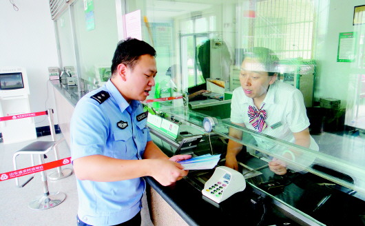 刘毅到辖区各金融网点发放《安全防范宣传手册》。