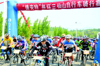 本报邹城5月5日讯(通讯员 吕锋 常婷 赵莹) 4月30日,由邹城市田黄镇政府、体育局、旅游局主办,邹城市自行车爱好者协会承办的“捷安特”杯环三仙山自行车骑行赛在邹城市田黄镇三仙山举行。活动吸引了200余名骑行爱好者参加。