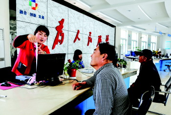 一位居民正在社区服务中心一楼大厅办理业务。本报特约记者 李岩松 摄