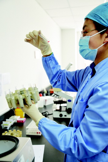 血站的工作人员正为产妇紧急配血。