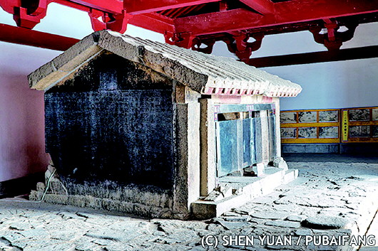 孝堂山石祠是悬山顶双开间建筑,体量并不大,室外东西宽4米有余,南北进深2.5米左右。人们常来凭吊,除了与贤明有关外,祠内三壁和过梁三面刻满的画像可能也是吸引人的一个方面。