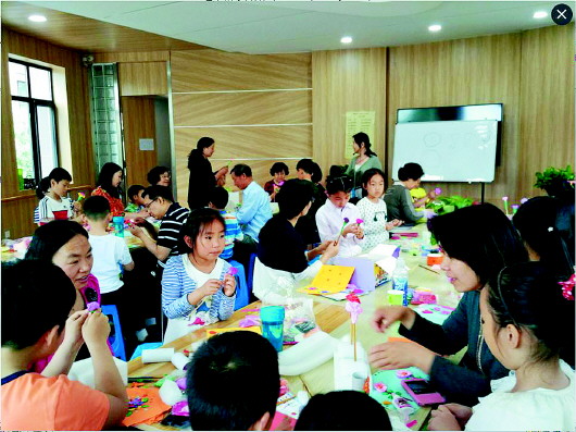 活动中,有的母子齐动手,完成了好几朵爱心康乃馨。妈妈将深深的母爱凝聚到了一朵朵小花中,而孩子的颗颗赤子之心在母爱的养育下,满满都是爱。有的爸爸也积极地参与其中,为自己的母亲和爱人做一朵爱之花,以表达自己对家的无限眷恋。整个课堂,充满了欢乐和温馨。欢快的笑声、丰富的想象力、亲子间的其乐融融,构成了和谐社区的一道靓丽风景。