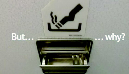 距离可以在飞机上尽情吸烟的“黄金时代”已经有些年头儿了,但是我们仍然能在飞机上,至少是盥洗室里发现烟灰缸的存在。这个问题曾经困扰了我许久,既然禁烟都已经这么多年了,为什么还能在机舱见到它们呢?