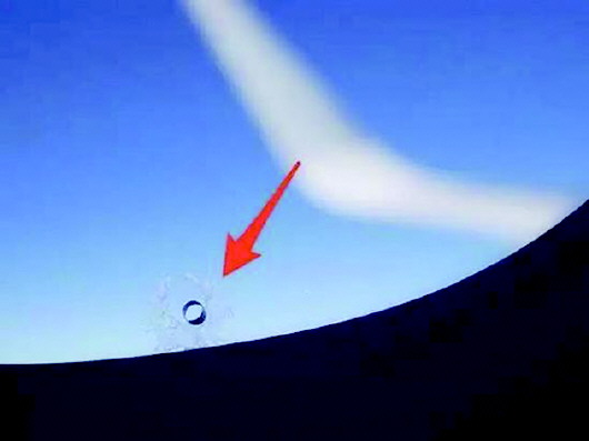 有了这个小洞,机舱内的较高的气压可以直接作用在最外层玻璃上,当小洞的调节作用达到极限时,最先破裂的玻璃也会是最外面的那一层。这样就能保证机舱还是封闭完整的,乘客才能继续呼吸。