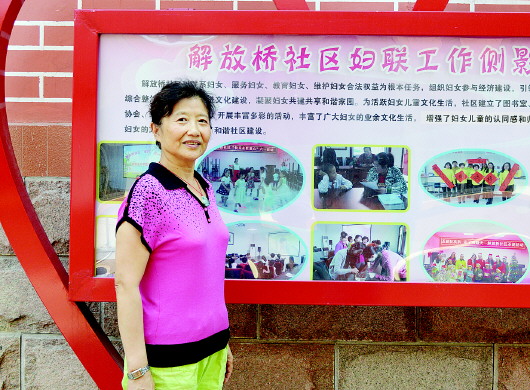 谭永平从1999年退休后便积极参加社区服务工作。参加社区服务工作至今,已有将近二十年的时间,在社区服务工作中,她认真参加各项政治学习,对社区党组织交给的各项任务积极完成。同时还联系群众,及时把群众反映的困难要求和问题传达给居委会,力所能及地为群众排忧解难。