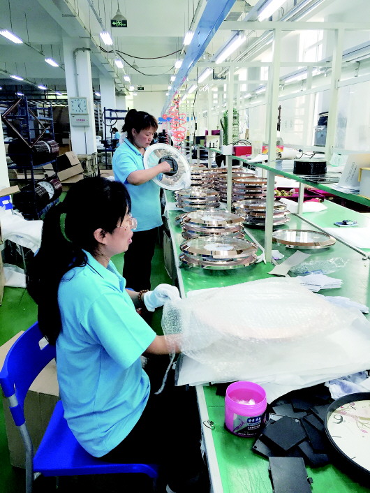 康巴丝的员工正在为网购下单的客户包装钟表。 本报记者 陈玮 摄